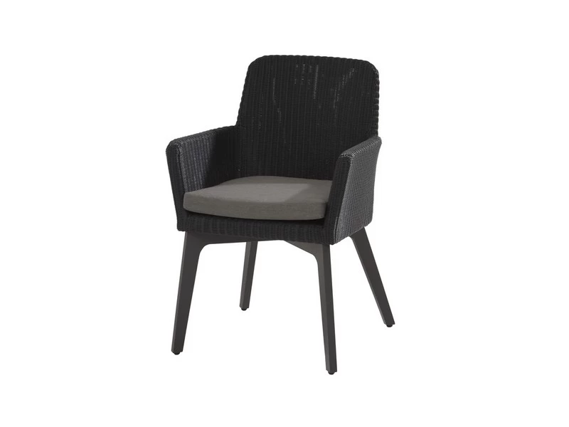 Deze zeer populaire Lisboa dining chair is uitgevoerd in polyloom antraciet vlechtwerk, met een aluminium frame in de kleur antraciet. Het Hularo wicker is van zeer hoogwaardige kwaliteit en met de hand gevlochten zodat deze stoel behalve het exclusieve design ook weerbestendig en zeer duurzaam is. Voor deze tuinstoelen hebben we tuinkussens met Olefin stof gebruikt, deze hebben een hoge weerbestendigheid en zijn eenvoudig uit te wassen en schoon te houden. Door de ruime keuze in kleur en materiaal is er ook een ruim aanbod in onze collectie aan tuintafels! Mix & Match en stel zo je favoriete tuinset samen met Lisboa.