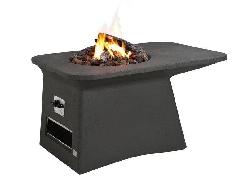 De tuinhaard is voorzien van een ingebouwde gashaard, de hoogte van de vlam is zelf te regelen middels een regelknop