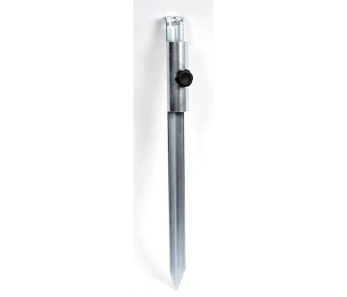 Een stevige verzinkte stalen parasolboor met stelschroef. Deze parasol grondboor is bedoeld voor het stevig plaatsen van een parasol direct in de grond. De parasolboor wordt in de grond geplaatst, waarna de parasol steel vastgezet kan worden met de stelschroef. Geschikt voor een steel van een parasol met een diameter tot 33 millimeter.