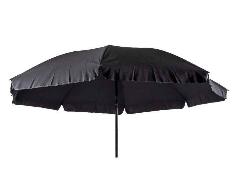 Een stijlvolle en stevige parasol met stalen frame. Het 160 gr/m² polyester doek biedt bescherming tegen schadelijke zonnestraling. De steel is voorzien van een knikarm zodat het doek richting de zon kan worden gebogen. De steel van de parasol heeft een diameter van 25 millimeter.