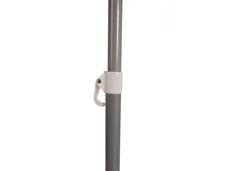 Een stijlvolle en stevige parasol met stalen frame. Het 160 gr/m² polyester doek biedt bescherming tegen schadelijke zonnestraling. De steel is voorzien van een knikarm zodat het doek richting de zon kan worden gebogen. De parasol steel heeft een diameter van 26 millimeter.