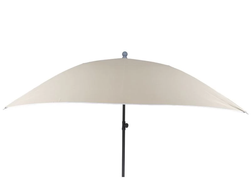 Stevige vierkante parasol, in hoogte verstelbaar.