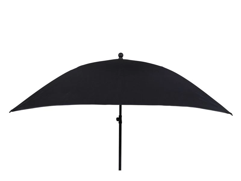 Stevige vierkante parasol, in hoogte verstelbaar.