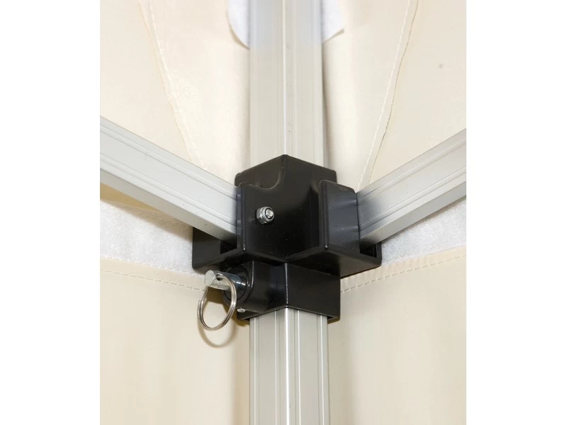 Een zeer stabiele en opvouwbare partytent. Deze partytent is zeer eenvoudig op te zetten en vervolgens weer in te klappen. Dit zonder dat het doek verwijderd dient te worden! Daarnaast is deze tent in hoogte verstelbaar tussen de 220 en 240 centimeter. Voorzien van een stevig en lichtgewicht aluminium frame en een 300 gr/m² polyester doek met waterdichte coating en getapete naden. De partytent is uit te breiden met diverse zijwanden. Afmetingen ingepakt (lxbxh): 25x27x159 cm. Afmetingen poten: 29×29 / 24×24 cm. Wanddikte poten: 1,7 mm. Afmetingen dakframe: 12×25 cm. Wanddikte dakframe: 1 mm.