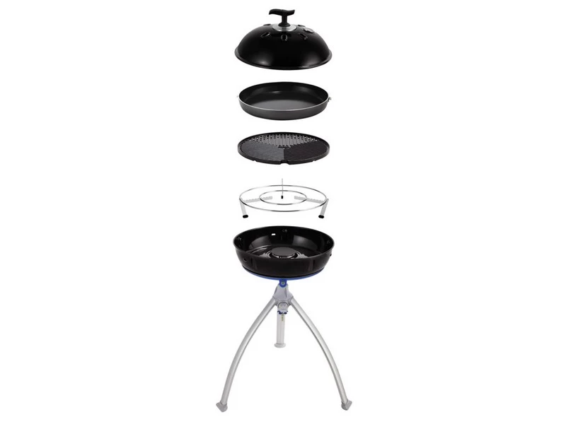 Dit nieuwste model heeft een automatische piezo-ontsteking en het BBQ rooster is voorzien van de Cadac GreenGrill coating; een duurzame en milieuvriendelijke keramische coating die eenvoudig te reinigen is. Met de pandrager kun je de Grillo Chef ook als kooktoestel te gebruiken. Handig voor het koken van pasta of saus.
