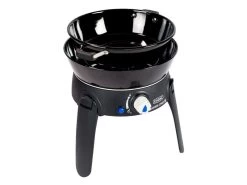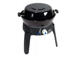 Deze draagbare, veelzijdige gasbarbecue weegt minder dan 4 kg en heeft maar liefst vier verschillende kookoppervlakken; een brander met pandrager, een BBQ rooster, een bakplaat en een deksel (ook als soeppan te gebruiken).