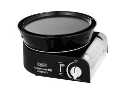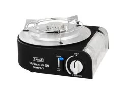 De nieuwe Safari Chef 30 Compact is een ultra compacte, lichtgewicht gasbarbecue. Deze BBQ werkt rechtstreeks op een 227gr gasblikje; plaats de gascartridge in het toestel, klik hem vast en je kunt gelijk beginnen met koken of barbecueën. Een ideaal toestel tijdens outdoor activiteiten en kampeervakanties. Ondanks zijn kleine formaat is de Safari Chef Compact uiterst veelzijdig dankzij de verschillende, meegeleverde kookoppervlakken; een pandrager, bakplaat, grillplaat en pan. Op de pandrager kook je eenvoudig een pannetje soep of pasta. Het BBQ rooster en de bakplaat zijn voorzien van CADAC’s GreenGrill coating en zijn perfect voor het bakken en grillen van vlees, vis en groentes. De deksel kun je ook gebruiken als (soep)pan en is dus multifunctioneel. De lekbak vangt eventuele kookresten op als je het BBQ rooster gebruikt, maar doet ook dienst als windscherm zodat de brander niet uitwaait. Een stevige draagtas wordt meegeleverd, zodat je de Safari Chef Compact eenvoudig overal mee naartoe neemt.
