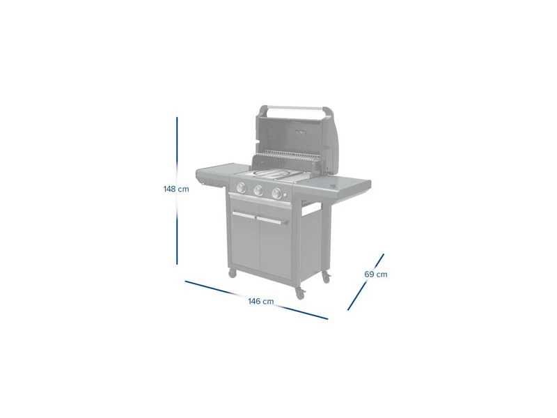 Maak een feest voor familie en vrienden met de 3 Series Premium S gas barbecue. Voorzien van efficiënte en krachtige roestvrijstalen branders met het efficiënte Blue Flame Power System dat zorgt voor aanzienlijk minder vlammen waardoor uw eten lekker en sappig blijft. Â