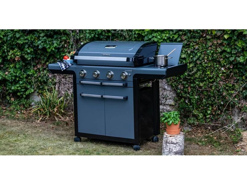Maak een feest voor familie en vrienden met de 4 Series Premium S gas barbecue. Voorzien van efficiënte en krachtige roestvrijstalen branders met het efficiënte Blue Flame Power System dat zorgt voor aanzienlijk minder vlammen waardoor uw eten lekker en sappig blijft. Â