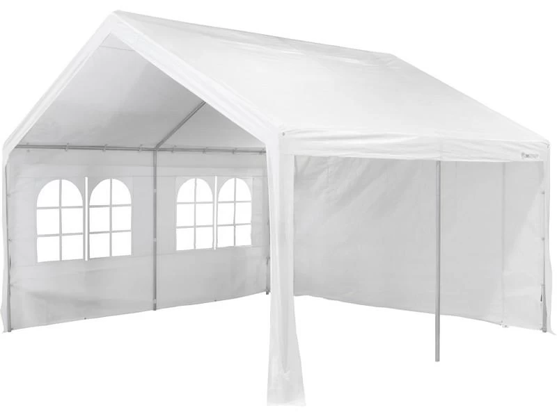 Met een deur aan beide kopse kanten, maar ook geheel af te sluiten met wanden. Ideaal als u een gezelschap heeft tijdens een feestje, barbecue of andere gezellige bijeenkomsten.