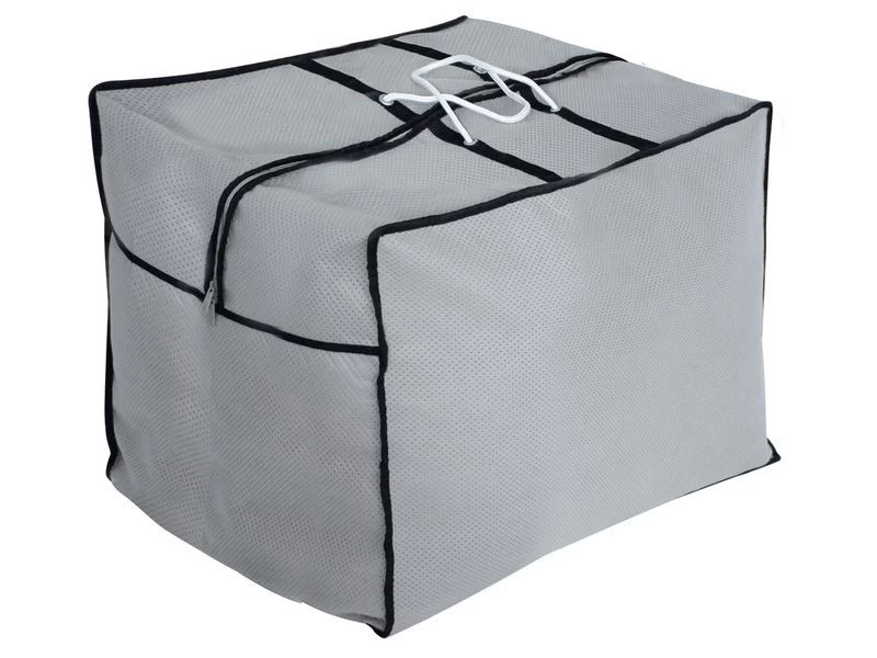 Een hoes voor loungesetkussens in de vorm van een draagzak, zodat je de kussens eenvoudig kunt verplaatsen.