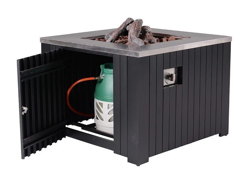 Zoekt u een sfeervolle toevoeging voor bij uw loungeset? De Cozy Living Faro sfeerhaard is door zijn stijlvolle design een populaire accessoire. De haard heeft een afmeting van 80×80 centimeter en een gasfles is op te bergen in de mat zwarte aluminium behuizing. Door de draaiknop is de bediening zeer eenvoudig. De bovenplaat is van RVS en aluminium. De sfeerhaard wordt geleverd inclusief lava stenen, lava houtblokken en een bijpassende beschermhoes. Een bijpassende glasset is apart verkrijgbaar.