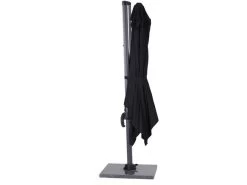 De Hawaii zweefparasol vierkant 300×300 cm is uitgevoerd in carbon black kleurig aluminium frame en is zeer gemakkelijk te bedienen. Deze zweefparasol is gemakkelijk 360 graden draaibaar, verticaal en horizontaal verstelbaar. De parasol wordt geleverd met een zwart 250grams parasoldoek voorzien van een PA coating. Totale hoogte van deze parasol is 240 cm. De Hawaii parasol wordt geleverd inclusief voet en beschermhoes.