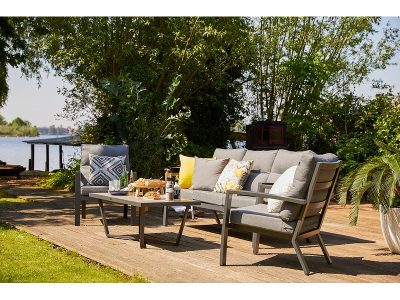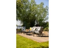 De canberra sofa set is een uitstekende lounge bank voor in de tuin of in de tuinkamer. Het frame is van aluminium en de set wordt geleverd inclusief kussens. De set kenmerkt zich door een wat hoger zithoogte en een hogere rughoogte.