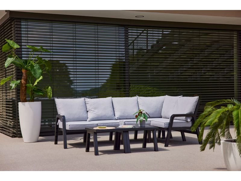 Let op! Hoeklounge set wordt geleverd met het 1 delige tafeltje.