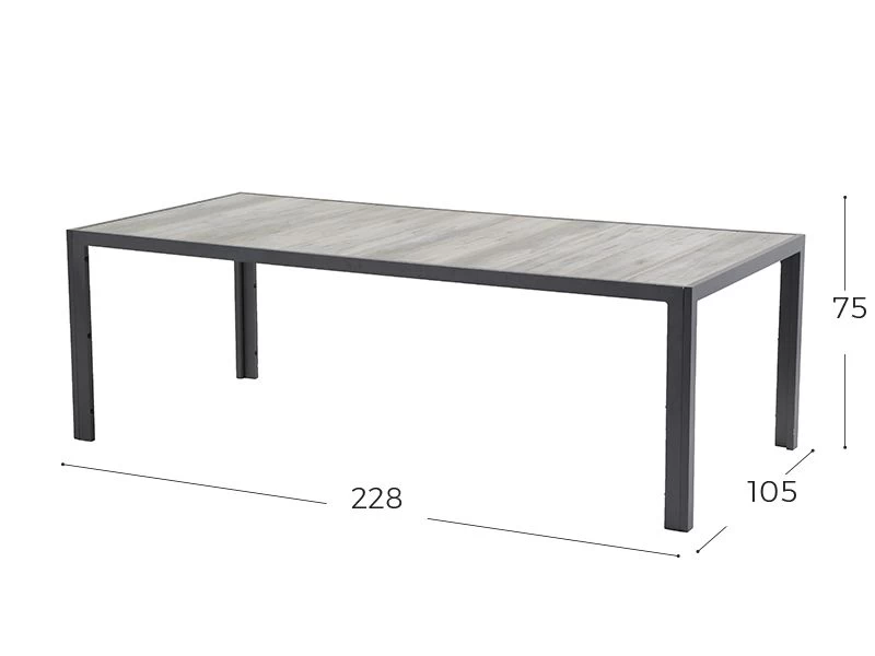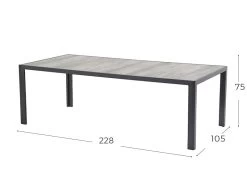 Afm. Tafel 228 x 105 x 74,5 cm.