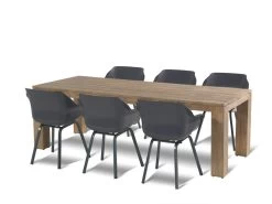 Deze set met de old teak tafel geeft een karakteristiek, landelijke uitstraling.