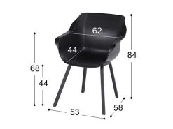 De Sophie Element armchair is een tuinstoel dat bestaat uit een aluminium onderstel met daarop een kuip van hoogwaardige kwaliteit kunststof. Dankzij het ontwerp, Curved Technology wordt er een extreem comfortabele zit ervaren. Niet alleen de zit is geweldig! De Sophie Element kenmerkt zich door haar strakke belijning. De aluminium poot is namelijk rechthoeking.