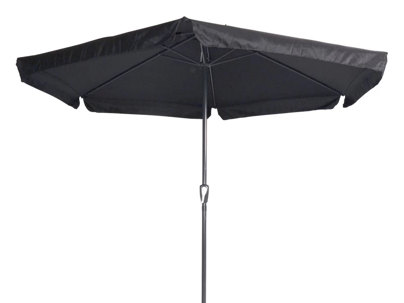 Mooie parasol voor in de tuin, leverbaar in 4 kleuren, ecru, zwart, grijs en taupe. Diameter van de parasol is 3 meter, mast is van aluminium en voorzien van een opdraaimechanisme.