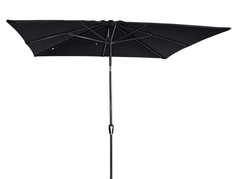 Vierkante tuinparasol welke ook heel geschikt is voor op en balkon. Leverbaar in 4 kleuren, ecru, zwart, grijs en taupe. Mast is van aluminium en voorzien van opdraaimechanisme.