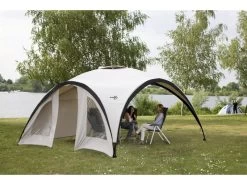 Hoewel het paviljoen prima een buitje kan verdragen, is deze bedoeld als zonwering. Bij (extreem) slecht weer en geen gebruik adviseren wij de tent droog op te bergen.