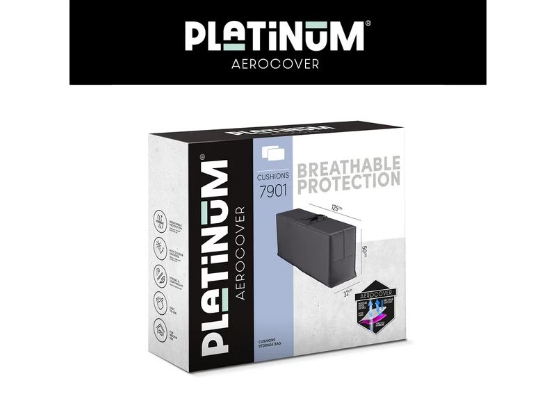 Platinum AeroCover kussentas. Ademende kussentas 125x32xH50cm voor het opbergen van hoge rugkussens van verstelbare stoelen of zit-en rug kussens van dinerstoelen. De kussentas heeft versterkte handvaten en een dubbele rits zodat u makkelijk bij de kussens kunt. Platinum AeroCover kussentassen zijn voor binnengebruik. De stof heeft een hoge kleurechtheid dankzij de door en door geverfde vezels.
