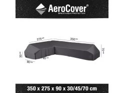 Loungesethoes van AeroCover. Ademende loungesethoes voor loungesets met platform links 350x275x90xH30/45/70. AeroCovers zijn ademend, waterbestendig, reduceren condensvorming en gaan schimmelvorming tegen. Wanneer u in de set zit is de linkerzijde langer dan de rechterzijde.De stof heeft een hoge kleurechtheid dankzij de door en door geverfde vezels. Een AeroCover hoes verlengt de levensduur van uw tuinmeubelen. AeroCovers zijn vervaardigd van sterk en lichtgewicht ripstop polyester. Ze zijn makkelijk hanteerbaar en nemen weinig ruimte in wanneer niet in gebruik. De afdekhoes is voorzien van rijgkoord met 2 stoppers voor een goede pasvorm. Inclusief handige opbergtas. AeroCover stoffen zijn 100% waterdicht, de naden zijn, net als elke ander hoes, spatwaterdicht.