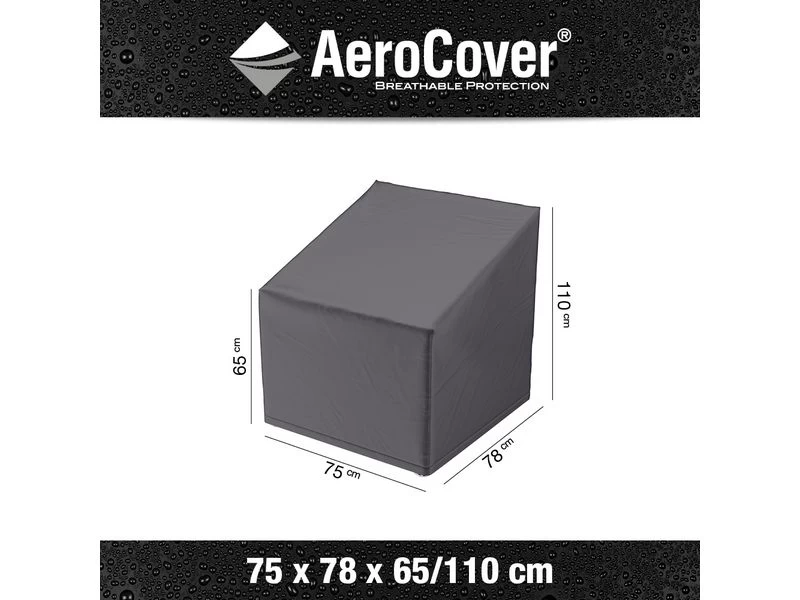 Loungestoelhoes van AeroCover. Ademende loungesethoes voor lounge stoel 75x78cm met extra hoge rug tot 110 cm. AeroCovers zijn ademend, waterbestendig, reduceren condensvorming en gaan schimmelvorming tegen. De stof heeft een hoge kleurechtheid dankzij de door en door geverfde vezels. Een AeroCover hoes verlengt de levensduur van uw tuinmeubelen. AeroCovers zijn vervaardigd van sterk en lichtgewicht ripstop polyester. Ze zijn makkelijk hanteerbaar en nemen weinig ruimte in wanneer niet in gebruik. De afdekhoes is voorzien van rijgkoord met 2 stoppers voor een goede pasvorm. Inclusief handige opbergtas. AeroCover stoffen zijn 100% waterdicht, de naden zijn, net als elke ander hoes, spatwaterdicht.