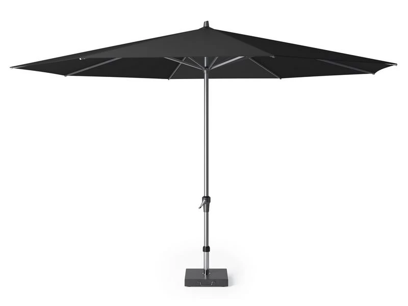 Parasol Riva Ø4,0 van Platinum. Deze moderne en strakke parasol is exclusief ontworpen door Platinum. De Riva parasol is voorzien van een easy-up opdraaimechanisme, doekspanners en een stevige, deelbare mast. De parasol is uitgevoerd met een 220 grams polyester doek met waterafstotende coating. Houd uw parasol als nieuw en dek deze alleen af met een AeroCover ademende parasolhoes wanneer u deze langere tijd niet gebruikt. De parasol wordt zonder voet geleverd. Wij adviseren deze parasol op een Rome 60kg parasolvoet van Platinum te plaatsen.