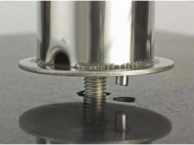 Zwart gepolijst graniet. Deze parasolvoet is makkelijk verplaatsbaar door zwenkwielen.
