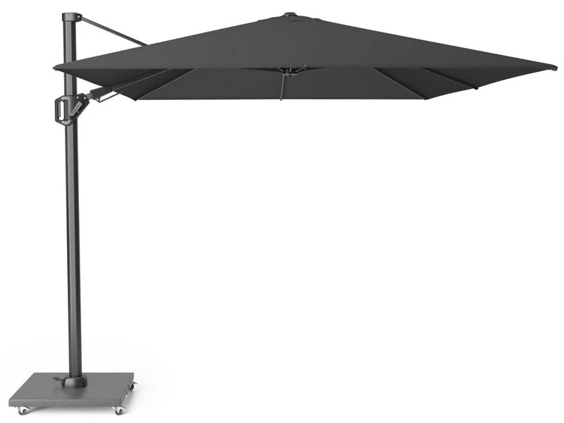 Zweefparasol Challenger T² 3×3 van Platinum. Deze parasol is voorzien van het unieke T2 kantelsysteem met rvs binnenwerk. Hierdoor kunt u uw zweefparasol traploos zijwaarts en achterover kantelen. De parasol is 360 graden draaibaar. Zo kunt u altijd in de schaduw zitten zonder de parasol te verplaatsen! De Challenger T2 zweefparasol is uitgevoerd met een zware kwaliteit 240 grams spuncrylic doek in voorzien van water- en vuilafstotende coating en doekspanners. Dit doek heeft een zeer hoge mate van kleurechtheid is getest in klasse 7 (uitstekend). Gebruik een AeroCover ademende parasolhoes om uw parasol als nieuw te houden. De zweefparasol heeft het grote voordeel dat de paal van de zweefparasol niet zo nadrukkelijk aanwezig is als bij een gewone parasol en wat verder van uw tuinset geplaatst kan worden. Hierdoor kan de gehele ruimte onder de zwevende parasol benut worden. De parasol wordt zonder voet geleverd. Wij adviseren deze parasol op een 120 kg parasolvoet van Platinum te plaatsen. Deze zijn met wielen leverbaar zodat de parasol makkelijk te verplaatsen is.