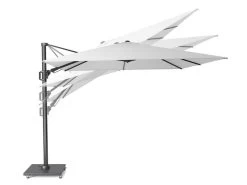 Dubbel kantelbare zweefparasol. 360 graden draaibaar. Uitgevoerd in spuncrylic.