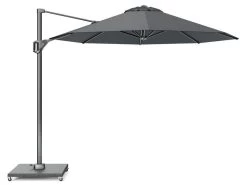 Zweefparasol Voyager T1 Ø3.0 van Platinum. Achterwaarts kantelbaar en 360 graden draaibaar. De Voyager T1 zweefparasol is uitgevoerd met een 220 grams antraciet polyester doek voorzien van water- en vuilafstotende coating. Dit doek heeft een hoge mate van kleurechtheid is getest in klasse 5-6 (goed – zeer goed). Een zweefparasol heeft het grote voordeel dat de paal van de zweefparasol niet zo nadrukkelijk aanwezig is als bij een gewone parasol en wat verder van uw tuinset geplaatst kan worden. Hierdoor kan de gehele ruimte onder de zwevende parasol benut worden. Houd uw parasol als nieuw en dek deze alleen af met een AeroCover ademende parasolhoes wanneer u deze langere tijd niet gebruikt. Granietvoet op foto tegen meerprijs leverbaar. In plaats van deze zweefparasols te verzwaren met tegels kan deze ook rechtstreeks op een 90kg parasolvoet van Platinum geplaatst worden. Deze zijn met wielen leverbaar zodat de parasol makkelijk te verplaatsen is.