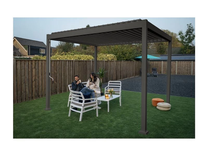 Door de verschillende uitvoeringen past deze terrasoverkapping in iedere tuin of op elk dakterras! De Rota heeft flexibele shutters waarmee je het zonlicht kan reguleren en is een kant en klare terrasoverkapping. De afmetingen van de Rota terrasoverkapping is: 300 x 360 x 250 cm (dit betreft de buitenmaat van paal naar paal).