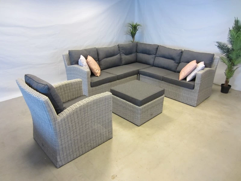 Lounge set is eenvoudig schoon te houden met warm water, groene zeep en een zachte borstel.