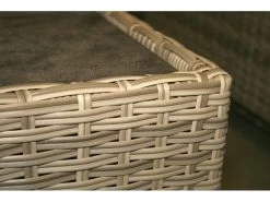 Het frame van de Te Velde hoek longe set Nogaro is van aluminium, het gevlochten materiaal is van kunststof. Deze hoogwaardige materialen maakt de loungebank bestand tegen weer en wind. De elegante kussens in antraciet zijn waterafstotend en zeer comfortabel.
