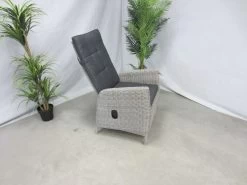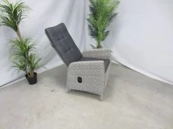 alu frame, 8mm dubbel rond wicker, met grijs dessin kussen, verstelbare rugleuning d.m.v. gasveer
