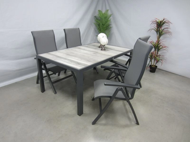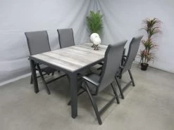 4 verstelbare tuinstoelen met tuintafel 168 x 105 cm.