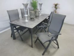 Mooi vormgegeven tuinstoel die bestaat uit een aluminium frame met een textilene doek. De rugleuning is rondom bekleed met textilene in tegenstelling tot alle andere modellen. De scharnierpunten zijn gemaakt van volledig aluminium. Extra stevig dus en een langere levensduur. Deze verstelbare tuinstoel is inklapbaar en voorzien van een duurzame coating in een donkere matt grey kleur. Deze kleur is eenvoudig te combineren met een tal van tuintafels. Natuursteen, aluminium, betonlook, het kan allemaal. Uw tafel blijft het hele jaar buiten staan? Dan is de Kettler diamond tafel met HPL blad een goede keuze voor de nieuwe tuintafel: onderhoudsvriendelijk, weerbestendig en temperatuurbestendig en daardoor zeer duurzaam.