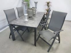 6 verstelbare tuinstoelen met tuintafel 220 x 95 cm.